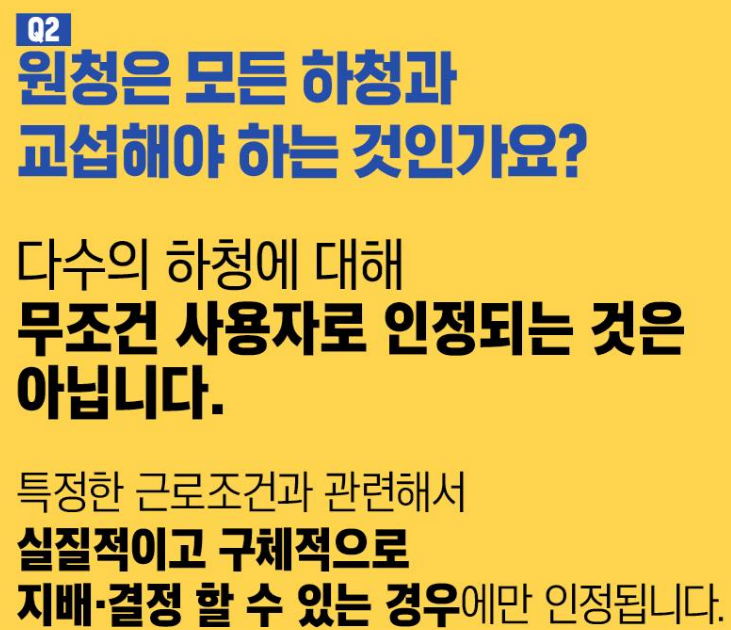 이는 하청 근로자나 특수고용직에게 교섭권을 보장하는 중요한 변화로 평가됩니다.