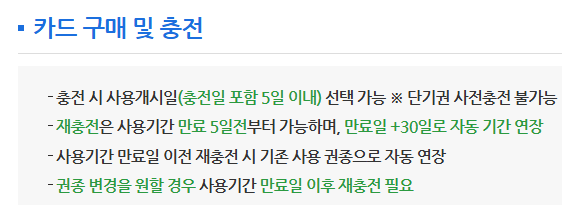 충전 시 사용개시일을 최대 5일 뒤로 지정할 수 있어 유연성이 있습니다.