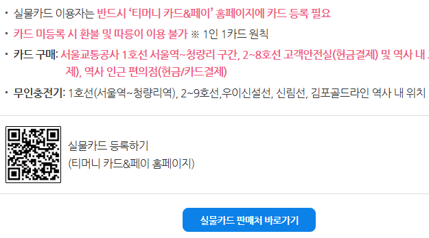 ➤ 충전방법: 지하철 무인충전기, 모바일티머니 앱 가능