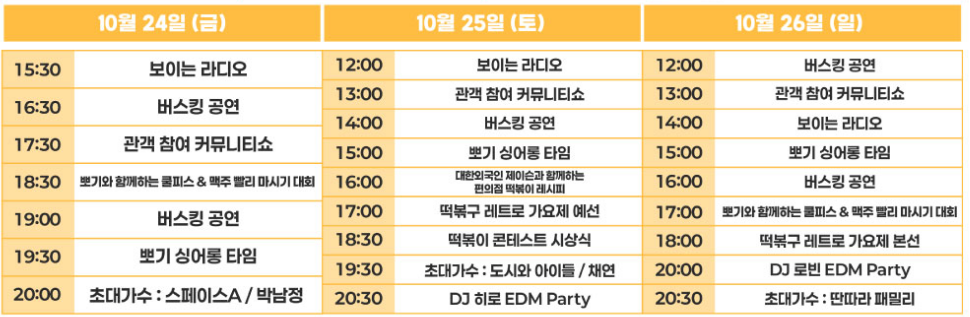 시간대별 분위기와 공연 타임라인은 행사 안내판을 참고하시면 좋습니다.