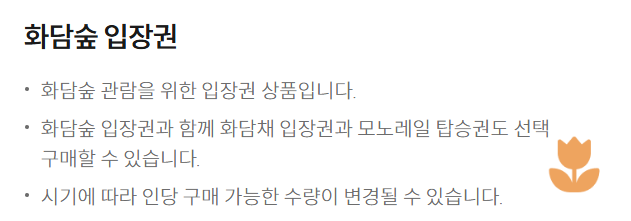 예약 및 발권 절차는 화담숲 공식 홈페이지 내 예매안내 페이지에서 확인하실 수 있습니다.