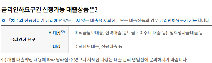 금리 인하 결정은 금융사가 심사 후 약정 시점에 반영되므로 즉시 적용되는 것은 아닙니다.