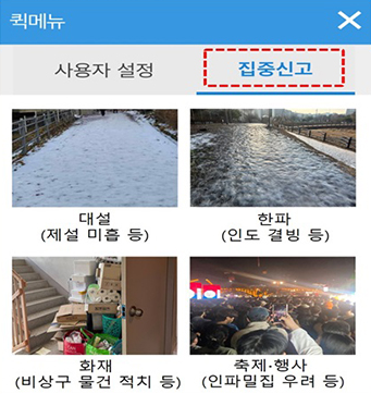 겨울철 집중신고 메뉴를 통해 계절별 위험 신고를 빠르게 진행할 수 있는 점도 장점입니다.