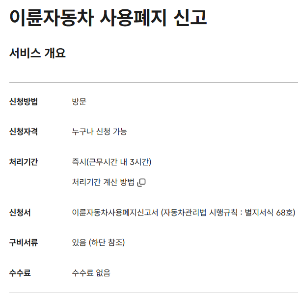 단순 폐차나 방치는 법적으로 폐지로 인정되지 않습니다.