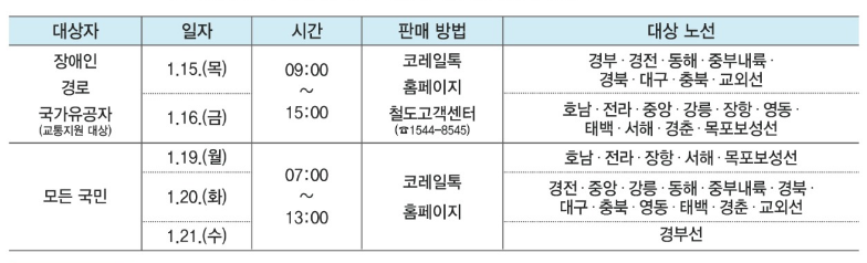 최근 설연휴 기차표 예매는 연휴 시작 약 한 달 전 사전 공지 후 예매가 진행됩니다.