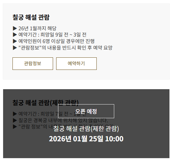 방문 전 공식 안내를 통해 관람 가능 여부를 확인해야 합니다.