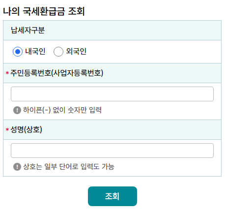 국세청 홈텍스를 이용하면 개인도 쉽게 환급금 조회가 가능합니다.