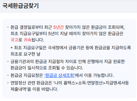 PC에서는 국세청 홈텍스에 로그인한 뒤 환급금 조회 메뉴를 이용할 수 있습니다.
