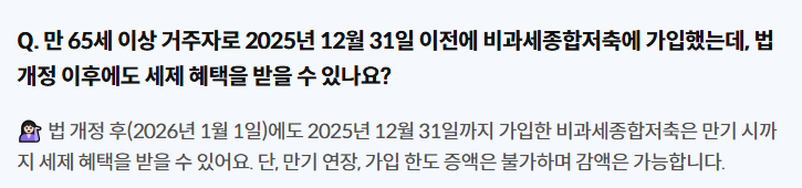 이로 인해 많은 고령자가 비과세 혜택을 활용해 왔습니다.